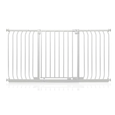 OVER 20 YEARS OF TRUST? Safetots, a family-owned business, has been dedicated to creating safe and secure spaces for children and pets for over two decades. Our commitment to safety and quality ensures that our products are rigorously tested to meet the highest current standards. With a legacy of trust and reliability, Safetots is a name you can depend on for your family's safety needs. RELIABLE SAFETY - Crafted from durable materials, our products ensure long-lasting protection. Smooth, rounded edges prevent injuries, while finishes are lick-safe and bite-proof for ultimate safety. Our sturdy baby gates feature robust, toddler-climb-proof, and finger-safe construction with a double-lock childproof opening system. Designed to exceed industry safety testing, all our baby gates pass the stringent Safety Barrier Standards EN1930:2011, providing unparalleled security. Safetots Elite Pressure Safety Gate, 161cm - 170cm COLOUR - Matt White - Features a high-quality paint finish that is rigorously tested and certified to be free from harmful chemicals. This ensures a child-safe coating, providing peace of mind while maintaining a durable and attractive appearance. HEIGHT OF GATE - When installed - 72.5cm PRESSURE FIT TECHNOLOGY - Securely mounts the safety gate without the need for drilling, using a pressure-fit system that creates a strong and stable barrier by applying tension between the gate and the walls or door frames. Ideal for easy installation and removal. ALL OPTIONS GATE STOPPER - Customize your gate to open in one direction or both, providing safety and flexibility to suit your specific needs. OPEN GATE WARNING INDICATOR - Our visual indicator reassures you that the gate is correctly closed and secure, offering you peace of mind. AUTOMATIC CLOSING SYSTEM- The gate closes behind you for peace of mind and eliminates the worry of accidentally leaving the gate open. WIDE WALK-THROUGH - The spacious opening allows for easy passage, making it convenient for adults and older children. EASILY EXTENDABLE- The gate can be effortlessly extended with simple one-piece gate extensions, accommodating various doorway widths. STAY OPEN TECHNOLOGY- The gate can be fixed in the open position when pushed past 90 degrees, staying open until you decide to close it, offering convenience for busy households. ERGONOMIC HANDLE - Designed for comfortable and easy use, the handle ensures easy one-hand opening and closing. EASE OF INSTALLATION & STYLISH DESIGN - Our gates offer quick, simple installation with detailed instructions for a secure fit. The intuitive one-hand opening mechanism for adults and easy-to-close, secure locking system enhance user-friendliness. Stylish and high-quality designs complement your home interior, making our products highly rated for reliability and ease of use. A comprehensive warranty is included, reflecting our commitment to customer satisfaction and product excellence.