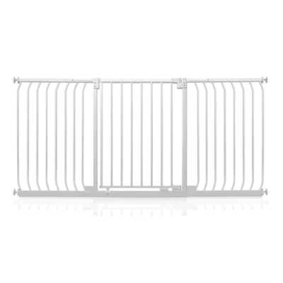 OVER 20 YEARS OF TRUST? Safetots, a family-owned business, has been dedicated to creating safe and secure spaces for children and pets for over two decades. Our commitment to safety and quality ensures that our products are rigorously tested to meet the highest current standards. With a legacy of trust and reliability, Safetots is a name you can depend on for your family's safety needs. RELIABLE SAFETY - Crafted from durable materials, our products ensure long-lasting protection. Smooth, rounded edges prevent injuries, while finishes are lick-safe and bite-proof for ultimate safety. Our sturdy baby gates feature robust, toddler-climb-proof, and finger-safe construction with a double-lock childproof opening system. Designed to exceed industry safety testing, all our baby gates pass the stringent Safety Barrier Standards EN1930:2011, providing unparalleled security. Safetots Elite Pressure Safety Gate, 179cm - 188cm COLOUR - Matt White - Features a high-quality paint finish that is rigorously tested and certified to be free from harmful chemicals. This ensures a child-safe coating, providing peace of mind while maintaining a durable and attractive appearance. HEIGHT OF GATE - When installed - 72.5cm PRESSURE FIT TECHNOLOGY - Securely mounts the safety gate without the need for drilling, using a pressure-fit system that creates a strong and stable barrier by applying tension between the gate and the walls or door frames. Ideal for easy installation and removal. ALL OPTIONS GATE STOPPER - Customize your gate to open in one direction or both, providing safety and flexibility to suit your specific needs. OPEN GATE WARNING INDICATOR - Our visual indicator reassures you that the gate is correctly closed and secure, offering you peace of mind. AUTOMATIC CLOSING SYSTEM- The gate closes behind you for peace of mind and eliminates the worry of accidentally leaving the gate open. WIDE WALK-THROUGH - The spacious opening allows for easy passage, making it convenient for adults and older children. EASILY EXTENDABLE- The gate can be effortlessly extended with simple one-piece gate extensions, accommodating various doorway widths. STAY OPEN TECHNOLOGY- The gate can be fixed in the open position when pushed past 90 degrees, staying open until you decide to close it, offering convenience for busy households. ERGONOMIC HANDLE - Designed for comfortable and easy use, the handle ensures easy one-hand opening and closing. EASE OF INSTALLATION & STYLISH DESIGN - Our gates offer quick, simple installation with detailed instructions for a secure fit. The intuitive one-hand opening mechanism for adults and easy-to-close, secure locking system enhance user-friendliness. Stylish and high-quality designs complement your home interior, making our products highly rated for reliability and ease of use. A comprehensive warranty is included, reflecting our commitment to customer satisfaction and product excellence.