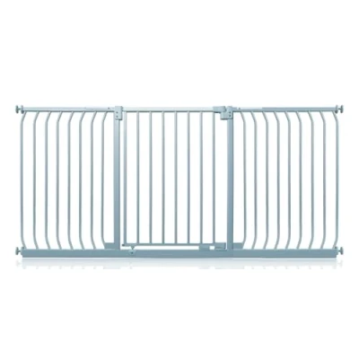 OVER 20 YEARS OF TRUST? Safetots, a family-owned business, has been dedicated to creating safe and secure spaces for children and pets for over two decades. Our commitment to safety and quality ensures that our products are rigorously tested to meet the highest current standards. With a legacy of trust and reliability, Safetots is a name you can depend on for your family's safety needs. RELIABLE SAFETY - Crafted from durable materials, our products ensure long-lasting protection. Smooth, rounded edges prevent injuries, while finishes are lick-safe and bite-proof for ultimate safety. Our sturdy baby gates feature robust, toddler-climb-proof, and finger-safe construction with a double-lock childproof opening system. Designed to exceed industry safety testing, all our baby gates pass the stringent Safety Barrier Standards EN1930:2011, providing unparalleled security. Safetots Elite Pressure Safety Gate, 188cm - 197cm COLOUR - Matt Grey - Features a high-quality paint finish that is rigorously tested and certified to be free from harmful chemicals. This ensures a child-safe coating, providing peace of mind while maintaining a durable and attractive appearance. HEIGHT OF GATE - When installed - 72.5cm PRESSURE FIT TECHNOLOGY - Securely mounts the safety gate without the need for drilling, using a pressure-fit system that creates a strong and stable barrier by applying tension between the gate and the walls or door frames. Ideal for easy installation and removal. ALL OPTIONS GATE STOPPER - Customize your gate to open in one direction or both, providing safety and flexibility to suit your specific needs. OPEN GATE WARNING INDICATOR - Our visual indicator reassures you that the gate is correctly closed and secure, offering you peace of mind. AUTOMATIC CLOSING SYSTEM- The gate closes behind you for peace of mind and eliminates the worry of accidentally leaving the gate open. WIDE WALK-THROUGH - The spacious opening allows for easy passage, making it convenient for adults and older children. EASILY EXTENDABLE- The gate can be effortlessly extended with simple one-piece gate extensions, accommodating various doorway widths. STAY OPEN TECHNOLOGY- The gate can be fixed in the open position when pushed past 90 degrees, staying open until you decide to close it, offering convenience for busy households. ERGONOMIC HANDLE - Designed for comfortable and easy use, the handle ensures easy one-hand opening and closing. EASE OF INSTALLATION & STYLISH DESIGN - Our gates offer quick, simple installation with detailed instructions for a secure fit. The intuitive one-hand opening mechanism for adults and easy-to-close, secure locking system enhance user-friendliness. Stylish and high-quality designs complement your home interior, making our products highly rated for reliability and ease of use. A comprehensive warranty is included, reflecting our commitment to customer satisfaction and product excellence.