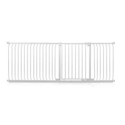 OVER 20 YEARS OF TRUST? Safetots, a family-owned business, has been dedicated to creating safe and secure spaces for children and pets for over two decades. Our commitment to safety and quality ensures that our products are rigorously tested to meet the highest current standards. With a legacy of trust and reliability, Safetots is a name you can depend on for your family's safety needs. RELIABLE SAFETY - Crafted from durable materials, our products ensure long-lasting protection. Smooth, rounded edges prevent injuries, while finishes are lick-safe and bite-proof for ultimate safety. Our sturdy baby gates feature robust, toddler-climb-proof, and finger-safe construction with a double-lock childproof opening system. Designed to exceed industry safety testing, all our baby gates pass the stringent Safety Barrier Standards EN1930:2011, providing unparalleled security. Safetots Elite Pressure Safety Gate, 216cm - 225cm COLOUR - Matt White - Features a high-quality paint finish that is rigorously tested and certified to be free from harmful chemicals. This ensures a child-safe coating, providing peace of mind while maintaining a durable and attractive appearance. HEIGHT OF GATE - When installed - 72.5cm PRESSURE FIT TECHNOLOGY - Securely mounts the safety gate without the need for drilling, using a pressure-fit system that creates a strong and stable barrier by applying tension between the gate and the walls or door frames. Ideal for easy installation and removal. ALL OPTIONS GATE STOPPER - Customize your gate to open in one direction or both, providing safety and flexibility to suit your specific needs. OPEN GATE WARNING INDICATOR - Our visual indicator reassures you that the gate is correctly closed and secure, offering you peace of mind. AUTOMATIC CLOSING SYSTEM- The gate closes behind you for peace of mind and eliminates the worry of accidentally leaving the gate open. WIDE WALK-THROUGH - The spacious opening allows for easy passage, making it convenient for adults and older children. EASILY EXTENDABLE- The gate can be effortlessly extended with simple one-piece gate extensions, accommodating various doorway widths. STAY OPEN TECHNOLOGY- The gate can be fixed in the open position when pushed past 90 degrees, staying open until you decide to close it, offering convenience for busy households. ERGONOMIC HANDLE - Designed for comfortable and easy use, the handle ensures easy one-hand opening and closing. EASE OF INSTALLATION & STYLISH DESIGN - Our gates offer quick, simple installation with detailed instructions for a secure fit. The intuitive one-hand opening mechanism for adults and easy-to-close, secure locking system enhance user-friendliness. Stylish and high-quality designs complement your home interior, making our products highly rated for reliability and ease of use. A comprehensive warranty is included, reflecting our commitment to customer satisfaction and product excellence.