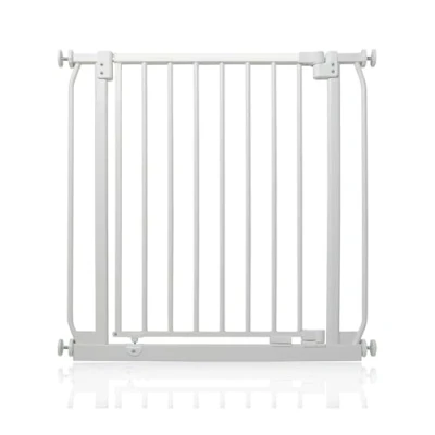 OVER 20 YEARS OF TRUST? Safetots, a family-owned business, has been dedicated to creating safe and secure spaces for children and pets for over two decades. Our commitment to safety and quality ensures that our products are rigorously tested to meet the highest current standards. With a legacy of trust and reliability, Safetots is a name you can depend on for your family's safety needs. RELIABLE SAFETY - Crafted from durable materials, our products ensure long-lasting protection. Smooth, rounded edges prevent injuries, while finishes are lick-safe and bite-proof for ultimate safety. Our sturdy baby gates feature robust, toddler-climb-proof, and finger-safe construction with a double-lock childproof opening system. Designed to exceed industry safety testing, all our baby gates pass the stringent Safety Barrier Standards EN1930:2011, providing unparalleled security. Safetots Elite Pressure Safety Gate, 71cm - 80cm COLOUR - Matt White - Features a high-quality paint finish that is rigorously tested and certified to be free from harmful chemicals. This ensures a child-safe coating, providing peace of mind while maintaining a durable and attractive appearance. HEIGHT OF GATE - When installed - 72.5cm PRESSURE FIT TECHNOLOGY - Securely mounts the safety gate without the need for drilling, using a pressure-fit system that creates a strong and stable barrier by applying tension between the gate and the walls or door frames. Ideal for easy installation and removal. ALL OPTIONS GATE STOPPER - Customize your gate to open in one direction or both, providing safety and flexibility to suit your specific needs. OPEN GATE WARNING INDICATOR - Our visual indicator reassures you that the gate is correctly closed and secure, offering you peace of mind. AUTOMATIC CLOSING SYSTEM- The gate closes behind you for peace of mind and eliminates the worry of accidentally leaving the gate open. WIDE WALK-THROUGH - The spacious opening allows for easy passage, making it convenient for adults and older children. EASILY EXTENDABLE- The gate can be effortlessly extended with simple one-piece gate extensions, accommodating various doorway widths. STAY OPEN TECHNOLOGY- The gate can be fixed in the open position when pushed past 90 degrees, staying open until you decide to close it, offering convenience for busy households. ERGONOMIC HANDLE - Designed for comfortable and easy use, the handle ensures easy one-hand opening and closing. EASE OF INSTALLATION & STYLISH DESIGN - Our gates offer quick, simple installation with detailed instructions for a secure fit. The intuitive one-hand opening mechanism for adults and easy-to-close, secure locking system enhance user-friendliness. Stylish and high-quality designs complement your home interior, making our products highly rated for reliability and ease of use. A comprehensive warranty is included, reflecting our commitment to customer satisfaction and product excellence.