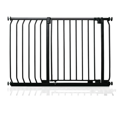 OVER 20 YEARS OF TRUST? Safetots, a family-owned business, has been dedicated to creating safe and secure spaces for children and pets for over two decades. Our commitment to safety and quality ensures that our products are rigorously tested to meet the highest current standards. With a legacy of trust and reliability, Safetots is a name you can depend on for your family's safety needs. RELIABLE SAFETY - Crafted from durable materials, our products ensure long-lasting protection. Smooth, rounded edges prevent injuries, while finishes are lick-safe and bite-proof for ultimate safety. Our sturdy baby gates feature robust, toddler-climb-proof, and finger-safe construction with a double-lock childproof opening system. Designed to exceed industry safety testing, all our baby gates pass the stringent Safety Barrier Standards EN1930:2011, providing unparalleled security. Safetots Elite Pressure Safety Gate, 98cm -107cm COLOUR - Matt Black - Features a high-quality paint finish that is rigorously tested and certified to be free from harmful chemicals. This ensures a child-safe coating, providing peace of mind while maintaining a durable and attractive appearance. HEIGHT OF GATE - When installed - 72.5cm PRESSURE FIT TECHNOLOGY - Securely mounts the safety gate without the need for drilling, using a pressure-fit system that creates a strong and stable barrier by applying tension between the gate and the walls or door frames. Ideal for easy installation and removal. ALL OPTIONS GATE STOPPER - Customize your gate to open in one direction or both, providing safety and flexibility to suit your specific needs. OPEN GATE WARNING INDICATOR - Our visual indicator reassures you that the gate is correctly closed and secure, offering you peace of mind. AUTOMATIC CLOSING SYSTEM- The gate closes behind you for peace of mind and eliminates the worry of accidentally leaving the gate open. WIDE WALK-THROUGH - The spacious opening allows for easy passage, making it convenient for adults and older children. EASILY EXTENDABLE- The gate can be effortlessly extended with simple one-piece gate extensions, accommodating various doorway widths. STAY OPEN TECHNOLOGY- The gate can be fixed in the open position when pushed past 90 degrees, staying open until you decide to close it, offering convenience for busy households. ERGONOMIC HANDLE - Designed for comfortable and easy use, the handle ensures easy one-hand opening and closing. EASE OF INSTALLATION & STYLISH DESIGN - Our gates offer quick, simple installation with detailed instructions for a secure fit. The intuitive one-hand opening mechanism for adults and easy-to-close, secure locking system enhance user-friendliness. Stylish and high-quality designs complement your home interior, making our products highly rated for reliability and ease of use. A comprehensive warranty is included, reflecting our commitment to customer satisfaction and product excellence.