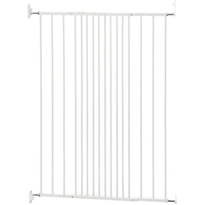 General description The Safetots Extra Tall Screw Fitted Baby Stair Gate is an extending metal gate designed to keep toddlers safe by restricting access to certain areas of the home. It is available in black or white, allowing it to blend seamlessly with various home interiors. Technical specifications Height: 103.5 cm Width: Expands from 62.5 cm to 106.8 cm Installation Easy to install with screw fittings Usage Can be opened in both directions Operated with one hand for convenience