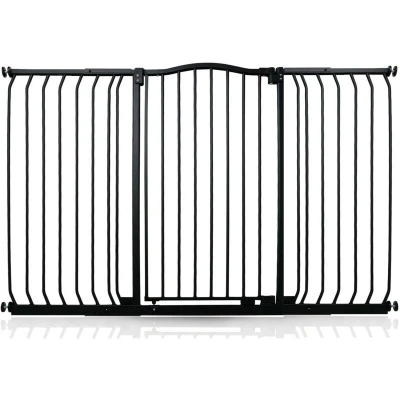General description The Safetots Extra Tall Curved Top Safety Gate is designed with the latest stair gate technology, providing a robust and stylish solution for parents and pet owners. With a height of 100cm, this gate is taller and wider, making it ideal for various needs. Technical specifications Height: 100cm Width: Adjustable from 152cm to 161cm, with extensions available for a maximum width of 280cm Installation type: Pressure fit Installation Easy installation with no need to screw into walls Can be installed in a few minutes using the provided installation guide Note: Can only be installed in a straight line Usage Opens in either direction Features auto close technology to ensure the gate is secured Stay open technology allows the gate to remain open beyond ninety degrees for easy access when not in use Quick check indicator technology alerts users if the gate is securely locked or improperly installed