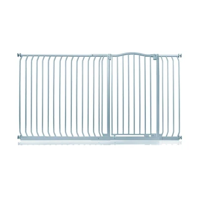 ManoManoGeneral description The Safetots Extra Tall Curved Top Safety Gate is designed with the latest stair gate technology, providing a robust and stylish solution for parents and pet owners. With a height of 100cm, this gate is taller and wider, making it ideal for various needs. Technical specifications Height: 100cm Width: Adjustable from 189cm to 198cm, with extensions available for a maximum width of 280cm Installation Pressure fitted, requiring no screws into walls Easy installation guide included Can only be installed in a straight line Usage Opens in either direction Features auto close technology for secure closure Stay open technology allows the gate to remain open beyond ninety degrees Quick check indicator alerts if the gate is securely locked or improperly installed