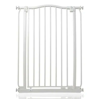 OVER 20 YEARS OF TRUST – Safetots, a family-owned business, has been dedicated to creating safe and secure spaces for children and pets for over two decades. Our commitment to safety and quality ensures that our products are rigorously tested to meet the highest current standards. With a legacy of trust and reliability, Safetots is a name you can depend on for your family's safety needs. RELIABLE SAFETY - Crafted from durable materials, our products ensure long-lasting protection. Smooth, rounded edges prevent injuries, while finishes are lick-safe and bite-proof for ultimate safety. Our sturdy baby gates feature robust, toddler-climb-proof, and finger-safe construction with a double-lock childproof opening system. Designed to exceed industry safety testing, all our baby gates pass the stringent Safety Barrier Standards EN1930:2011, providing unparalleled security. Safetots Extra Tall Curved Top Safety Gate, 71cm - 80cm COLOUR - Matt White - Features a high-quality paint finish that is rigorously tested and certified to be free from harmful chemicals. This ensures a child-safe coating, providing peace of mind while maintaining a durable and attractive appearance. HEIGHT OF GATE - When installed - 100cm PRESSURE FIT TECHNOLOGY - Securely mounts the safety gate without the need for drilling, using a pressure-fit system that creates a strong and stable barrier by applying tension between the gate and the walls or door frames. Ideal for easy installation and removal. NO GATE RESTRICTOR - Gate opens freely in both directions. OPEN GATE WARNING INDICATOR - Our visual indicator reassures you that the gate is correctly closed and secure, offering you peace of mind. AUTOMATIC CLOSING SYSTEM - The gate closes behind you for peace of mind and eliminates the worry of accidentally leaving the gate open. WIDE WALK-THROUGH - The spacious opening allows for easy passage, making it convenient for adults and older children. EASILY EXTENDABLE - The gate can be effortlessly extended with simple one-piece gate extensions, accommodating various doorway widths. STAY OPEN TECHNOLOGY - The gate can be fixed in the open position when pushed past 90 degrees, staying open until you decide to close it, offering convenience for busy households. ERGONOMIC HANDLE - Designed for comfortable and easy use, the handle ensures easy one-hand opening and closing. EXTRA TALL - Designed to be exceptionally tall, sturdy, and secure, making it ideal for both children and pets. Meets EN1930:2011 safety standards. EASE OF INSTALLATION & STYLISH DESIGN - Our gates offer quick, simple installation with detailed instructions for a secure fit. The intuitive one-hand opening mechanism for adults and easy-to-close, secure locking system enhance user-friendliness. Stylish and high-quality designs complement your home interior, making our products highly rated for reliability and ease of use. A comprehensive warranty is included, reflecting our commitment to customer satisfaction and product excellence.
