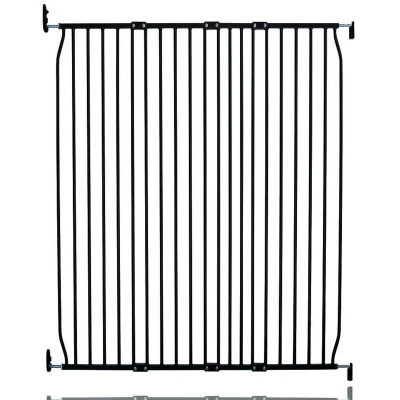 OVER 20 YEARS OF TRUST? Safetots, a family-owned business, has been dedicated to creating safe and secure spaces for children and pets for over two decades. Our commitment to safety and quality ensures that our products are rigorously tested to meet the highest current standards. With a legacy of trust and reliability, Safetots is a name you can depend on for your family's safety needs. RELIABLE SAFETY - Crafted from durable materials, our products ensure long-lasting protection. Smooth, rounded edges prevent injuries, while finishes are lick-safe and bite-proof for ultimate safety. Our sturdy baby gates feature robust, toddler-climb-proof, and finger-safe construction with a double-lock childproof opening system. Designed to exceed industry safety testing, all our baby gates pass the stringent Safety Barrier Standards EN1930:2011, providing unparalleled security. Safetots Extra Tall Eco Screw Fit Baby Gate, 120cm - 130cm COLOUR - Black - Features a high-quality paint finish that is rigorously tested and certified to be free from harmful chemicals. This ensures a child-safe coating, providing peace of mind while maintaining a durable and attractive appearance. HEIGHT OF GATE - When installed - 100cm SCREW FIT (HARDWARE MOUNTED) - Provides a highly secure mounting solution for the safety gate. No trip hazard and wide walkthrough doorway make this gate especially suitable for use at the top of the stairs and ideal for any space for longer-term use and high-traffic areas. Ensures maximum stability and durability. ONE WAY GATE STOPPER - Gate opens only in your desired direction, a safety feature essential for the stairs and useful around the home. NO TRIP GATE - No bottom bar, ensuring no tripping hazards as you walk through the gate. SIMPLE CLOSE - Manual closing system for quick and easy locking. NO FRAME DESIGN - All door and no frame design ensures maximum passage and walkthrough space. EASILY EXTENDABLE- The gate can be effortlessly extended with simple one-piece gate extensions, accommodating various doorway widths. STAY OPEN ABILITY - The safety gate remains open until you decide to close it. NO HANDLE DESIGN - Seamless latch operation for opening and closing. EXTRA TALL - Designed to be exceptionally tall, sturdy, and secure, making it ideal for both children and pets. Meets EN1930:2011 safety standards. EASE OF INSTALLATION & STYLISH DESIGN - Our gates offer quick, simple installation with detailed instructions for a secure fit. The intuitive one-hand opening mechanism for adults and easy-to-close, secure locking system enhance user-friendliness. Stylish and high-quality designs complement your home interior, making our products highly rated for reliability and ease of use. A comprehensive warranty is included, reflecting our commitment to customer satisfaction and product excellence.