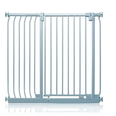 OVER 20 YEARS OF TRUST – Safetots, a family-owned business, has been dedicated to creating safe and secure spaces for children and pets for over two decades. Our commitment to safety and quality ensures that our products are rigorously tested to meet the highest current standards. With a legacy of trust and reliability, Safetots is a name you can depend on for your family's safety needs. RELIABLE SAFETY - Crafted from durable materials, our products ensure long-lasting protection. Smooth, rounded edges prevent injuries, while finishes are lick-safe and bite-proof for ultimate safety. Our sturdy baby gates feature robust, toddler-climb-proof, and finger-safe construction with a double-lock childproof opening system. Designed to exceed industry safety testing, all our baby gates pass the stringent Safety Barrier Standards EN1930:2011, providing unparalleled security. Safetots Extra Tall Elite Safety Gate, 107cm - 116cm COLOUR - Matt Grey - Features a high-quality paint finish that is rigorously tested and certified to be free from harmful chemicals. This ensures a child-safe coating, providing peace of mind while maintaining a durable and attractive appearance. HEIGHT OF GATE - When installed - 96.8cm PRESSURE FIT TECHNOLOGY - Securely mounts the safety gate without the need for drilling, using a pressure-fit system that creates a strong and stable barrier by applying tension between the gate and the walls or door frames. Ideal for easy installation and removal. ALL OPTIONS GATE STOPPER - Customize your gate to open in one direction or both, providing safety and flexibility to suit your specific needs. OPEN GATE WARNING INDICATOR - Our visual indicator reassures you that the gate is correctly closed and secure, offering you peace of mind. AUTOMATIC CLOSING SYSTEM - The gate closes behind you for peace of mind and eliminates the worry of accidentally leaving the gate open. WIDE WALK-THROUGH - The spacious opening allows for easy passage, making it convenient for adults and older children. EASILY EXTENDABLE - The gate can be effortlessly extended with simple one-piece gate extensions, accommodating various doorway widths. STAY OPEN TECHNOLOGY - The gate can be fixed in the open position when pushed past 90 degrees, staying open until you decide to close it, offering convenience for busy households. ERGONOMIC HANDLE - Designed for comfortable and easy use, the handle ensures easy one-hand opening and closing. EXTRA TALL - Designed to be exceptionally tall, sturdy, and secure, making it ideal for both children and pets. Meets EN1930:2011 safety standards. EASE OF INSTALLATION & STYLISH DESIGN - Our gates offer quick, simple installation with detailed instructions for a secure fit. The intuitive one-hand opening mechanism for adults and easy-to-close, secure locking system enhance user-friendliness. Stylish and high-quality designs complement your home interior, making our products highly rated for reliability and ease of use. A comprehensive warranty is included, reflecting our commitment to customer satisfaction and product excellence.