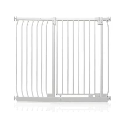 OVER 20 YEARS OF TRUST – Safetots, a family-owned business, has been dedicated to creating safe and secure spaces for children and pets for over two decades. Our commitment to safety and quality ensures that our products are rigorously tested to meet the highest current standards. With a legacy of trust and reliability, Safetots is a name you can depend on for your family's safety needs. RELIABLE SAFETY - Crafted from durable materials, our products ensure long-lasting protection. Smooth, rounded edges prevent injuries, while finishes are lick-safe and bite-proof for ultimate safety. Our sturdy baby gates feature robust, toddler-climb-proof, and finger-safe construction with a double-lock childproof opening system. Designed to exceed industry safety testing, all our baby gates pass the stringent Safety Barrier Standards EN1930:2011, providing unparalleled security. Safetots Extra Tall Elite Safety Gate, 116cm - 125cm COLOUR - Matt White - Features a high-quality paint finish that is rigorously tested and certified to be free from harmful chemicals. This ensures a child-safe coating, providing peace of mind while maintaining a durable and attractive appearance. HEIGHT OF GATE - When installed - 96.8cm PRESSURE FIT TECHNOLOGY - Securely mounts the safety gate without the need for drilling, using a pressure-fit system that creates a strong and stable barrier by applying tension between the gate and the walls or door frames. Ideal for easy installation and removal. ALL OPTIONS GATE STOPPER - Customize your gate to open in one direction or both, providing safety and flexibility to suit your specific needs. OPEN GATE WARNING INDICATOR - Our visual indicator reassures you that the gate is correctly closed and secure, offering you peace of mind. AUTOMATIC CLOSING SYSTEM - The gate closes behind you for peace of mind and eliminates the worry of accidentally leaving the gate open. WIDE WALK-THROUGH - The spacious opening allows for easy passage, making it convenient for adults and older children. EASILY EXTENDABLE - The gate can be effortlessly extended with simple one-piece gate extensions, accommodating various doorway widths. STAY OPEN TECHNOLOGY - The gate can be fixed in the open position when pushed past 90 degrees, staying open until you decide to close it, offering convenience for busy households. ERGONOMIC HANDLE - Designed for comfortable and easy use, the handle ensures easy one-hand opening and closing. EXTRA TALL - Designed to be exceptionally tall, sturdy, and secure, making it ideal for both children and pets. Meets EN1930:2011 safety standards. EASE OF INSTALLATION & STYLISH DESIGN - Our gates offer quick, simple installation with detailed instructions for a secure fit. The intuitive one-hand opening mechanism for adults and easy-to-close, secure locking system enhance user-friendliness. Stylish and high-quality designs complement your home interior, making our products highly rated for reliability and ease of use. A comprehensive warranty is included, reflecting our commitment to customer satisfaction and product excellence.