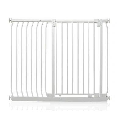 OVER 20 YEARS OF TRUST – Safetots, a family-owned business, has been dedicated to creating safe and secure spaces for children and pets for over two decades. Our commitment to safety and quality ensures that our products are rigorously tested to meet the highest current standards. With a legacy of trust and reliability, Safetots is a name you can depend on for your family's safety needs. RELIABLE SAFETY - Crafted from durable materials, our products ensure long-lasting protection. Smooth, rounded edges prevent injuries, while finishes are lick-safe and bite-proof for ultimate safety. Our sturdy baby gates feature robust, toddler-climb-proof, and finger-safe construction with a double-lock childproof opening system. Designed to exceed industry safety testing, all our baby gates pass the stringent Safety Barrier Standards EN1930:2011, providing unparalleled security. Safetots Extra Tall Elite Safety Gate, 125cm - 134cm COLOUR - Matt White - Features a high-quality paint finish that is rigorously tested and certified to be free from harmful chemicals. This ensures a child-safe coating, providing peace of mind while maintaining a durable and attractive appearance. HEIGHT OF GATE - When installed - 96.8cm PRESSURE FIT TECHNOLOGY - Securely mounts the safety gate without the need for drilling, using a pressure-fit system that creates a strong and stable barrier by applying tension between the gate and the walls or door frames. Ideal for easy installation and removal. ALL OPTIONS GATE STOPPER - Customize your gate to open in one direction or both, providing safety and flexibility to suit your specific needs. OPEN GATE WARNING INDICATOR - Our visual indicator reassures you that the gate is correctly closed and secure, offering you peace of mind. AUTOMATIC CLOSING SYSTEM - The gate closes behind you for peace of mind and eliminates the worry of accidentally leaving the gate open. WIDE WALK-THROUGH - The spacious opening allows for easy passage, making it convenient for adults and older children. EASILY EXTENDABLE - The gate can be effortlessly extended with simple one-piece gate extensions, accommodating various doorway widths. STAY OPEN TECHNOLOGY - The gate can be fixed in the open position when pushed past 90 degrees, staying open until you decide to close it, offering convenience for busy households. ERGONOMIC HANDLE - Designed for comfortable and easy use, the handle ensures easy one-hand opening and closing. EXTRA TALL - Designed to be exceptionally tall, sturdy, and secure, making it ideal for both children and pets. Meets EN1930:2011 safety standards. EASE OF INSTALLATION & STYLISH DESIGN - Our gates offer quick, simple installation with detailed instructions for a secure fit. The intuitive one-hand opening mechanism for adults and easy-to-close, secure locking system enhance user-friendliness. Stylish and high-quality designs complement your home interior, making our products highly rated for reliability and ease of use. A comprehensive warranty is included, reflecting our commitment to customer satisfaction and product excellence.