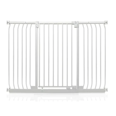 OVER 20 YEARS OF TRUST – Safetots, a family-owned business, has been dedicated to creating safe and secure spaces for children and pets for over two decades. Our commitment to safety and quality ensures that our products are rigorously tested to meet the highest current standards. With a legacy of trust and reliability, Safetots is a name you can depend on for your family's safety needs. RELIABLE SAFETY - Crafted from durable materials, our products ensure long-lasting protection. Smooth, rounded edges prevent injuries, while finishes are lick-safe and bite-proof for ultimate safety. Our sturdy baby gates feature robust, toddler-climb-proof, and finger-safe construction with a double-lock childproof opening system. Designed to exceed industry safety testing, all our baby gates pass the stringent Safety Barrier Standards EN1930:2011, providing unparalleled security. Safetots Extra Tall Elite Safety Gate, 143cm - 152cm COLOUR - Matt White - Features a high-quality paint finish that is rigorously tested and certified to be free from harmful chemicals. This ensures a child-safe coating, providing peace of mind while maintaining a durable and attractive appearance. HEIGHT OF GATE - When installed - 96.8cm PRESSURE FIT TECHNOLOGY - Securely mounts the safety gate without the need for drilling, using a pressure-fit system that creates a strong and stable barrier by applying tension between the gate and the walls or door frames. Ideal for easy installation and removal. ALL OPTIONS GATE STOPPER - Customize your gate to open in one direction or both, providing safety and flexibility to suit your specific needs. OPEN GATE WARNING INDICATOR - Our visual indicator reassures you that the gate is correctly closed and secure, offering you peace of mind. AUTOMATIC CLOSING SYSTEM - The gate closes behind you for peace of mind and eliminates the worry of accidentally leaving the gate open. WIDE WALK-THROUGH - The spacious opening allows for easy passage, making it convenient for adults and older children. EASILY EXTENDABLE - The gate can be effortlessly extended with simple one-piece gate extensions, accommodating various doorway widths. STAY OPEN TECHNOLOGY - The gate can be fixed in the open position when pushed past 90 degrees, staying open until you decide to close it, offering convenience for busy households. ERGONOMIC HANDLE - Designed for comfortable and easy use, the handle ensures easy one-hand opening and closing. EXTRA TALL - Designed to be exceptionally tall, sturdy, and secure, making it ideal for both children and pets. Meets EN1930:2011 safety standards. EASE OF INSTALLATION & STYLISH DESIGN - Our gates offer quick, simple installation with detailed instructions for a secure fit. The intuitive one-hand opening mechanism for adults and easy-to-close, secure locking system enhance user-friendliness. Stylish and high-quality designs complement your home interior, making our products highly rated for reliability and ease of use. A comprehensive warranty is included, reflecting our commitment to customer satisfaction and product excellence.