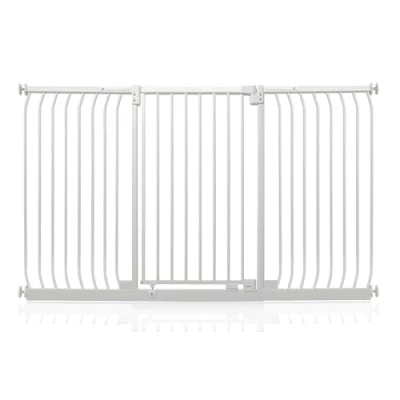 OVER 20 YEARS OF TRUST – Safetots, a family-owned business, has been dedicated to creating safe and secure spaces for children and pets for over two decades. Our commitment to safety and quality ensures that our products are rigorously tested to meet the highest current standards. With a legacy of trust and reliability, Safetots is a name you can depend on for your family's safety needs. RELIABLE SAFETY - Crafted from durable materials, our products ensure long-lasting protection. Smooth, rounded edges prevent injuries, while finishes are lick-safe and bite-proof for ultimate safety. Our sturdy baby gates feature robust, toddler-climb-proof, and finger-safe construction with a double-lock childproof opening system. Designed to exceed industry safety testing, all our baby gates pass the stringent Safety Barrier Standards EN1930:2011, providing unparalleled security. Safetots Extra Tall Elite Safety Gate, 179cm - 188cm COLOUR - Matt White - Features a high-quality paint finish that is rigorously tested and certified to be free from harmful chemicals. This ensures a child-safe coating, providing peace of mind while maintaining a durable and attractive appearance. HEIGHT OF GATE - When installed - 96.8cm PRESSURE FIT TECHNOLOGY - Securely mounts the safety gate without the need for drilling, using a pressure-fit system that creates a strong and stable barrier by applying tension between the gate and the walls or door frames. Ideal for easy installation and removal. ALL OPTIONS GATE STOPPER - Customize your gate to open in one direction or both, providing safety and flexibility to suit your specific needs. OPEN GATE WARNING INDICATOR - Our visual indicator reassures you that the gate is correctly closed and secure, offering you peace of mind. AUTOMATIC CLOSING SYSTEM - The gate closes behind you for peace of mind and eliminates the worry of accidentally leaving the gate open. WIDE WALK-THROUGH - The spacious opening allows for easy passage, making it convenient for adults and older children. EASILY EXTENDABLE - The gate can be effortlessly extended with simple one-piece gate extensions, accommodating various doorway widths. STAY OPEN TECHNOLOGY - The gate can be fixed in the open position when pushed past 90 degrees, staying open until you decide to close it, offering convenience for busy households. ERGONOMIC HANDLE - Designed for comfortable and easy use, the handle ensures easy one-hand opening and closing. EXTRA TALL - Designed to be exceptionally tall, sturdy, and secure, making it ideal for both children and pets. Meets EN1930:2011 safety standards. EASE OF INSTALLATION & STYLISH DESIGN - Our gates offer quick, simple installation with detailed instructions for a secure fit. The intuitive one-hand opening mechanism for adults and easy-to-close, secure locking system enhance user-friendliness. Stylish and high-quality designs complement your home interior, making our products highly rated for reliability and ease of use. A comprehensive warranty is included, reflecting our commitment to customer satisfaction and product excellence.