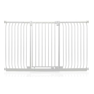 OVER 20 YEARS OF TRUST – Safetots, a family-owned business, has been dedicated to creating safe and secure spaces for children and pets for over two decades. Our commitment to safety and quality ensures that our products are rigorously tested to meet the highest current standards. With a legacy of trust and reliability, Safetots is a name you can depend on for your family's safety needs. RELIABLE SAFETY - Crafted from durable materials, our products ensure long-lasting protection. Smooth, rounded edges prevent injuries, while finishes are lick-safe and bite-proof for ultimate safety. Our sturdy baby gates feature robust, toddler-climb-proof, and finger-safe construction with a double-lock childproof opening system. Designed to exceed industry safety testing, all our baby gates pass the stringent Safety Barrier Standards EN1930:2011, providing unparalleled security. Safetots Extra Tall Elite Safety Gate, 188cm - 197cm COLOUR - Matt White - Features a high-quality paint finish that is rigorously tested and certified to be free from harmful chemicals. This ensures a child-safe coating, providing peace of mind while maintaining a durable and attractive appearance. HEIGHT OF GATE - When installed - 96.8cm PRESSURE FIT TECHNOLOGY - Securely mounts the safety gate without the need for drilling, using a pressure-fit system that creates a strong and stable barrier by applying tension between the gate and the walls or door frames. Ideal for easy installation and removal. ALL OPTIONS GATE STOPPER - Customize your gate to open in one direction or both, providing safety and flexibility to suit your specific needs. OPEN GATE WARNING INDICATOR - Our visual indicator reassures you that the gate is correctly closed and secure, offering you peace of mind. AUTOMATIC CLOSING SYSTEM - The gate closes behind you for peace of mind and eliminates the worry of accidentally leaving the gate open. WIDE WALK-THROUGH - The spacious opening allows for easy passage, making it convenient for adults and older children. EASILY EXTENDABLE - The gate can be effortlessly extended with simple one-piece gate extensions, accommodating various doorway widths. STAY OPEN TECHNOLOGY - The gate can be fixed in the open position when pushed past 90 degrees, staying open until you decide to close it, offering convenience for busy households. ERGONOMIC HANDLE - Designed for comfortable and easy use, the handle ensures easy one-hand opening and closing. EXTRA TALL - Designed to be exceptionally tall, sturdy, and secure, making it ideal for both children and pets. Meets EN1930:2011 safety standards. EASE OF INSTALLATION & STYLISH DESIGN - Our gates offer quick, simple installation with detailed instructions for a secure fit. The intuitive one-hand opening mechanism for adults and easy-to-close, secure locking system enhance user-friendliness. Stylish and high-quality designs complement your home interior, making our products highly rated for reliability and ease of use. A comprehensive warranty is included, reflecting our commitment to customer satisfaction and product excellence.