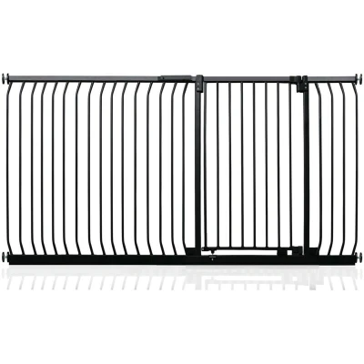 OVER 20 YEARS OF TRUST – Safetots, a family-owned business, has been dedicated to creating safe and secure spaces for children and pets for over two decades. Our commitment to safety and quality ensures that our products are rigorously tested to meet the highest current standards. With a legacy of trust and reliability, Safetots is a name you can depend on for your family's safety needs. RELIABLE SAFETY - Crafted from durable materials, our products ensure long-lasting protection. Smooth, rounded edges prevent injuries, while finishes are lick-safe and bite-proof for ultimate safety. Our sturdy baby gates feature robust, toddler-climb-proof, and finger-safe construction with a double-lock childproof opening system. Designed to exceed industry safety testing, all our baby gates pass the stringent Safety Barrier Standards EN1930:2011, providing unparalleled security. Safetots Extra Tall Elite Safety Gate, 189cm - 198cm COLOUR - Matt Black - Features a high-quality paint finish that is rigorously tested and certified to be free from harmful chemicals. This ensures a child-safe coating, providing peace of mind while maintaining a durable and attractive appearance. HEIGHT OF GATE - When installed - 96.8cm PRESSURE FIT TECHNOLOGY - Securely mounts the safety gate without the need for drilling, using a pressure-fit system that creates a strong and stable barrier by applying tension between the gate and the walls or door frames. Ideal for easy installation and removal. ALL OPTIONS GATE STOPPER - Customize your gate to open in one direction or both, providing safety and flexibility to suit your specific needs. OPEN GATE WARNING INDICATOR - Our visual indicator reassures you that the gate is correctly closed and secure, offering you peace of mind. AUTOMATIC CLOSING SYSTEM - The gate closes behind you for peace of mind and eliminates the worry of accidentally leaving the gate open. WIDE WALK-THROUGH - The spacious opening allows for easy passage, making it convenient for adults and older children. EASILY EXTENDABLE - The gate can be effortlessly extended with simple one-piece gate extensions, accommodating various doorway widths. STAY OPEN TECHNOLOGY - The gate can be fixed in the open position when pushed past 90 degrees, staying open until you decide to close it, offering convenience for busy households. ERGONOMIC HANDLE - Designed for comfortable and easy use, the handle ensures easy one-hand opening and closing. EXTRA TALL - Designed to be exceptionally tall, sturdy, and secure, making it ideal for both children and pets. Meets EN1930:2011 safety standards. EASE OF INSTALLATION & STYLISH DESIGN - Our gates offer quick, simple installation with detailed instructions for a secure fit. The intuitive one-hand opening mechanism for adults and easy-to-close, secure locking system enhance user-friendliness. Stylish and high-quality designs complement your home interior, making our products highly rated for reliability and ease of use. A comprehensive warranty is included, reflecting our commitment to customer satisfaction and product excellence.