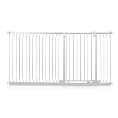 OVER 20 YEARS OF TRUST – Safetots, a family-owned business, has been dedicated to creating safe and secure spaces for children and pets for over two decades. Our commitment to safety and quality ensures that our products are rigorously tested to meet the highest current standards. With a legacy of trust and reliability, Safetots is a name you can depend on for your family's safety needs. RELIABLE SAFETY - Crafted from durable materials, our products ensure long-lasting protection. Smooth, rounded edges prevent injuries, while finishes are lick-safe and bite-proof for ultimate safety. Our sturdy baby gates feature robust, toddler-climb-proof, and finger-safe construction with a double-lock childproof opening system. Designed to exceed industry safety testing, all our baby gates pass the stringent Safety Barrier Standards EN1930:2011, providing unparalleled security. Safetots Extra Tall Elite Safety Gate, 189cm - 198cm COLOUR - Matt White - Features a high-quality paint finish that is rigorously tested and certified to be free from harmful chemicals. This ensures a child-safe coating, providing peace of mind while maintaining a durable and attractive appearance. HEIGHT OF GATE - When installed - 96.8cm PRESSURE FIT TECHNOLOGY - Securely mounts the safety gate without the need for drilling, using a pressure-fit system that creates a strong and stable barrier by applying tension between the gate and the walls or door frames. Ideal for easy installation and removal. ALL OPTIONS GATE STOPPER - Customize your gate to open in one direction or both, providing safety and flexibility to suit your specific needs. OPEN GATE WARNING INDICATOR - Our visual indicator reassures you that the gate is correctly closed and secure, offering you peace of mind. AUTOMATIC CLOSING SYSTEM - The gate closes behind you for peace of mind and eliminates the worry of accidentally leaving the gate open. WIDE WALK-THROUGH - The spacious opening allows for easy passage, making it convenient for adults and older children. EASILY EXTENDABLE - The gate can be effortlessly extended with simple one-piece gate extensions, accommodating various doorway widths. STAY OPEN TECHNOLOGY - The gate can be fixed in the open position when pushed past 90 degrees, staying open until you decide to close it, offering convenience for busy households. ERGONOMIC HANDLE - Designed for comfortable and easy use, the handle ensures easy one-hand opening and closing. EXTRA TALL - Designed to be exceptionally tall, sturdy, and secure, making it ideal for both children and pets. Meets EN1930:2011 safety standards. EASE OF INSTALLATION & STYLISH DESIGN - Our gates offer quick, simple installation with detailed instructions for a secure fit. The intuitive one-hand opening mechanism for adults and easy-to-close, secure locking system enhance user-friendliness. Stylish and high-quality designs complement your home interior, making our products highly rated for reliability and ease of use. A comprehensive warranty is included, reflecting our commitment to customer satisfaction and product excellence.