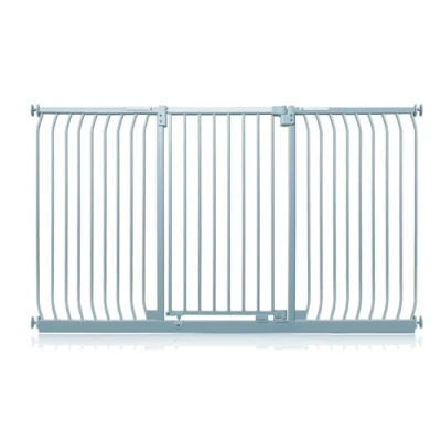 OVER 20 YEARS OF TRUST – Safetots, a family-owned business, has been dedicated to creating safe and secure spaces for children and pets for over two decades. Our commitment to safety and quality ensures that our products are rigorously tested to meet the highest current standards. With a legacy of trust and reliability, Safetots is a name you can depend on for your family's safety needs. RELIABLE SAFETY - Crafted from durable materials, our products ensure long-lasting protection. Smooth, rounded edges prevent injuries, while finishes are lick-safe and bite-proof for ultimate safety. Our sturdy baby gates feature robust, toddler-climb-proof, and finger-safe construction with a double-lock childproof opening system. Designed to exceed industry safety testing, all our baby gates pass the stringent Safety Barrier Standards EN1930:2011, providing unparalleled security. Safetots Extra Tall Elite Safety Gate, 197cm - 206cm COLOUR - Matt Grey - Features a high-quality paint finish that is rigorously tested and certified to be free from harmful chemicals. This ensures a child-safe coating, providing peace of mind while maintaining a durable and attractive appearance. HEIGHT OF GATE - When installed - 96.8cm PRESSURE FIT TECHNOLOGY - Securely mounts the safety gate without the need for drilling, using a pressure-fit system that creates a strong and stable barrier by applying tension between the gate and the walls or door frames. Ideal for easy installation and removal. ALL OPTIONS GATE STOPPER - Customize your gate to open in one direction or both, providing safety and flexibility to suit your specific needs. OPEN GATE WARNING INDICATOR - Our visual indicator reassures you that the gate is correctly closed and secure, offering you peace of mind. AUTOMATIC CLOSING SYSTEM - The gate closes behind you for peace of mind and eliminates the worry of accidentally leaving the gate open. WIDE WALK-THROUGH - The spacious opening allows for easy passage, making it convenient for adults and older children. EASILY EXTENDABLE - The gate can be effortlessly extended with simple one-piece gate extensions, accommodating various doorway widths. STAY OPEN TECHNOLOGY - The gate can be fixed in the open position when pushed past 90 degrees, staying open until you decide to close it, offering convenience for busy households. ERGONOMIC HANDLE - Designed for comfortable and easy use, the handle ensures easy one-hand opening and closing. EXTRA TALL - Designed to be exceptionally tall, sturdy, and secure, making it ideal for both children and pets. Meets EN1930:2011 safety standards. EASE OF INSTALLATION & STYLISH DESIGN - Our gates offer quick, simple installation with detailed instructions for a secure fit. The intuitive one-hand opening mechanism for adults and easy-to-close, secure locking system enhance user-friendliness. Stylish and high-quality designs complement your home interior, making our products highly rated for reliability and ease of use. A comprehensive warranty is included, reflecting our commitment to customer satisfaction and product excellence.