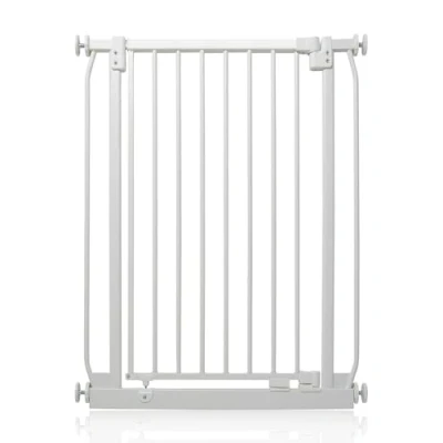 OVER 20 YEARS OF TRUST – Safetots, a family-owned business, has been dedicated to creating safe and secure spaces for children and pets for over two decades. Our commitment to safety and quality ensures that our products are rigorously tested to meet the highest current standards. With a legacy of trust and reliability, Safetots is a name you can depend on for your family's safety needs. RELIABLE SAFETY - Crafted from durable materials, our products ensure long-lasting protection. Smooth, rounded edges prevent injuries, while finishes are lick-safe and bite-proof for ultimate safety. Our sturdy baby gates feature robust, toddler-climb-proof, and finger-safe construction with a double-lock childproof opening system. Designed to exceed industry safety testing, all our baby gates pass the stringent Safety Barrier Standards EN1930:2011, providing unparalleled security. Safetots Extra Tall Elite Safety Gate, 71cm - 80cm COLOUR - Matt White - Features a high-quality paint finish that is rigorously tested and certified to be free from harmful chemicals. This ensures a child-safe coating, providing peace of mind while maintaining a durable and attractive appearance. HEIGHT OF GATE - When installed - 96.8cm PRESSURE FIT TECHNOLOGY - Securely mounts the safety gate without the need for drilling, using a pressure-fit system that creates a strong and stable barrier by applying tension between the gate and the walls or door frames. Ideal for easy installation and removal. ALL OPTIONS GATE STOPPER - Customize your gate to open in one direction or both, providing safety and flexibility to suit your specific needs. OPEN GATE WARNING INDICATOR - Our visual indicator reassures you that the gate is correctly closed and secure, offering you peace of mind. AUTOMATIC CLOSING SYSTEM - The gate closes behind you for peace of mind and eliminates the worry of accidentally leaving the gate open. WIDE WALK-THROUGH - The spacious opening allows for easy passage, making it convenient for adults and older children. EASILY EXTENDABLE - The gate can be effortlessly extended with simple one-piece gate extensions, accommodating various doorway widths. STAY OPEN TECHNOLOGY - The gate can be fixed in the open position when pushed past 90 degrees, staying open until you decide to close it, offering convenience for busy households. ERGONOMIC HANDLE - Designed for comfortable and easy use, the handle ensures easy one-hand opening and closing. EXTRA TALL - Designed to be exceptionally tall, sturdy, and secure, making it ideal for both children and pets. Meets EN1930:2011 safety standards. EASE OF INSTALLATION & STYLISH DESIGN - Our gates offer quick, simple installation with detailed instructions for a secure fit. The intuitive one-hand opening mechanism for adults and easy-to-close, secure locking system enhance user-friendliness. Stylish and high-quality designs complement your home interior, making our products highly rated for reliability and ease of use. A comprehensive warranty is included, reflecting our commitment to customer satisfaction and product excellence.
