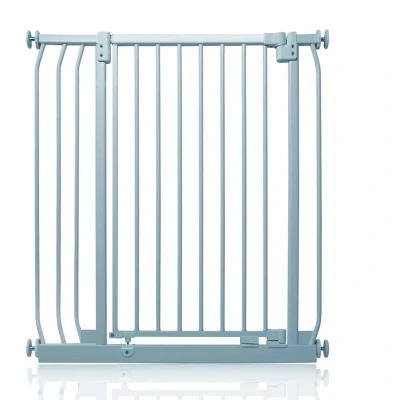 OVER 20 YEARS OF TRUST – Safetots, a family-owned business, has been dedicated to creating safe and secure spaces for children and pets for over two decades. Our commitment to safety and quality ensures that our products are rigorously tested to meet the highest current standards. With a legacy of trust and reliability, Safetots is a name you can depend on for your family's safety needs. RELIABLE SAFETY - Crafted from durable materials, our products ensure long-lasting protection. Smooth, rounded edges prevent injuries, while finishes are lick-safe and bite-proof for ultimate safety. Our sturdy baby gates feature robust, toddler-climb-proof, and finger-safe construction with a double-lock childproof opening system. Designed to exceed industry safety testing, all our baby gates pass the stringent Safety Barrier Standards EN1930:2011, providing unparalleled security. Safetots Extra Tall Elite Safety Gate, 80cm - 89cm COLOUR - Matt Grey - Features a high-quality paint finish that is rigorously tested and certified to be free from harmful chemicals. This ensures a child-safe coating, providing peace of mind while maintaining a durable and attractive appearance. HEIGHT OF GATE - When installed - 96.8cm PRESSURE FIT TECHNOLOGY - Securely mounts the safety gate without the need for drilling, using a pressure-fit system that creates a strong and stable barrier by applying tension between the gate and the walls or door frames. Ideal for easy installation and removal. ALL OPTIONS GATE STOPPER - Customize your gate to open in one direction or both, providing safety and flexibility to suit your specific needs. OPEN GATE WARNING INDICATOR - Our visual indicator reassures you that the gate is correctly closed and secure, offering you peace of mind. AUTOMATIC CLOSING SYSTEM - The gate closes behind you for peace of mind and eliminates the worry of accidentally leaving the gate open. WIDE WALK-THROUGH - The spacious opening allows for easy passage, making it convenient for adults and older children. EASILY EXTENDABLE - The gate can be effortlessly extended with simple one-piece gate extensions, accommodating various doorway widths. STAY OPEN TECHNOLOGY - The gate can be fixed in the open position when pushed past 90 degrees, staying open until you decide to close it, offering convenience for busy households. ERGONOMIC HANDLE - Designed for comfortable and easy use, the handle ensures easy one-hand opening and closing. EXTRA TALL - Designed to be exceptionally tall, sturdy, and secure, making it ideal for both children and pets. Meets EN1930:2011 safety standards. EASE OF INSTALLATION & STYLISH DESIGN - Our gates offer quick, simple installation with detailed instructions for a secure fit. The intuitive one-hand opening mechanism for adults and easy-to-close, secure locking system enhance user-friendliness. Stylish and high-quality designs complement your home interior, making our products highly rated for reliability and ease of use. A comprehensive warranty is included, reflecting our commitment to customer satisfaction and product excellence.