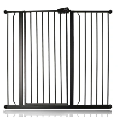OVER 20 YEARS OF TRUST? Safetots, a family-owned business, has been dedicated to creating safe and secure spaces for children and pets for over two decades. Our commitment to safety and quality ensures that our products are rigorously tested to meet the highest current standards. With a legacy of trust and reliability, Safetots is a name you can depend on for your family's safety needs. RELIABLE SAFETY - Crafted from durable materials, our products ensure long-lasting protection. Smooth, rounded edges prevent injuries, while finishes are lick-safe and bite-proof for ultimate safety. Our sturdy baby gates feature robust, toddler-climb-proof, and finger-safe construction with a double-lock childproof opening system. Designed to exceed industry safety testing, all our baby gates pass the stringent Safety Barrier Standards EN1930:2011, providing unparalleled security. Safetots Extra Tall Metal Safety Gate Pressure Fit, 113.8cm - 121.4cm COLOUR - Matt Black - Features a high-quality paint finish that is rigorously tested and certified to be free from harmful chemicals. This ensures a child-safe coating, providing peace of mind while maintaining a durable and attractive appearance. HEIGHT OF GATE - When installed - 104cm PRESSURE FIT TECHNOLOGY - Securely mounts the safety gate without the need for drilling, using a pressure-fit system that creates a strong and stable barrier by applying tension between the gate and the walls or door frames. Ideal for easy installation and removal. ONE WAY GATE STOPPER - Gate opens only in your desired direction, a safety feature essential for the stairs and useful around the home. SIMPLE CLOSE - Manual closing system for quick and easy locking. WIDE WALK-THROUGH - The spacious opening allows for easy passage, making it convenient for adults and older children. EASILY EXTENDABLE- The gate can be effortlessly extended with simple one-piece gate extensions, accommodating various doorway widths. STAY OPEN ABILITY - The safety gate remains open until you decide to close it. ERGONOMIC HANDLE - Designed for comfortable and easy use, the handle ensures easy one-hand opening and closing. EXTRA TALL - Designed to be exceptionally tall, sturdy, and secure, making it ideal for both children and pets. Meets EN1930:2011 safety standards. EASE OF INSTALLATION & STYLISH DESIGN - Our gates offer quick, simple installation with detailed instructions for a secure fit. The intuitive one-hand opening mechanism for adults and easy-to-close, secure locking system enhance user-friendliness. Stylish and high-quality designs complement your home interior, making our products highly rated for reliability and ease of use. A comprehensive warranty is included, reflecting our commitment to customer satisfaction and product excellence.