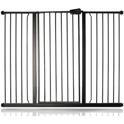 OVER 20 YEARS OF TRUST? Safetots, a family-owned business, has been dedicated to creating safe and secure spaces for children and pets for over two decades. Our commitment to safety and quality ensures that our products are rigorously tested to meet the highest current standards. With a legacy of trust and reliability, Safetots is a name you can depend on for your family's safety needs. RELIABLE SAFETY - Crafted from durable materials, our products ensure long-lasting protection. Smooth, rounded edges prevent injuries, while finishes are lick-safe and bite-proof for ultimate safety. Our sturdy baby gates feature robust, toddler-climb-proof, and finger-safe construction with a double-lock childproof opening system. Designed to exceed industry safety testing, all our baby gates pass the stringent Safety Barrier Standards EN1930:2011, providing unparalleled security. Safetots Extra Tall Metal Safety Gate Pressure Fit, 120.3cm - 127.9cm COLOUR - Matt Black - Features a high-quality paint finish that is rigorously tested and certified to be free from harmful chemicals. This ensures a child-safe coating, providing peace of mind while maintaining a durable and attractive appearance. HEIGHT OF GATE - When installed - 104cm PRESSURE FIT TECHNOLOGY - Securely mounts the safety gate without the need for drilling, using a pressure-fit system that creates a strong and stable barrier by applying tension between the gate and the walls or door frames. Ideal for easy installation and removal. ONE WAY GATE STOPPER - Gate opens only in your desired direction, a safety feature essential for the stairs and useful around the home. SIMPLE CLOSE - Manual closing system for quick and easy locking. WIDE WALK-THROUGH - The spacious opening allows for easy passage, making it convenient for adults and older children. EASILY EXTENDABLE- The gate can be effortlessly extended with simple one-piece gate extensions, accommodating various doorway widths. STAY OPEN ABILITY - The safety gate remains open until you decide to close it. ERGONOMIC HANDLE - Designed for comfortable and easy use, the handle ensures easy one-hand opening and closing. EXTRA TALL - Designed to be exceptionally tall, sturdy, and secure, making it ideal for both children and pets. Meets EN1930:2011 safety standards. EASE OF INSTALLATION & STYLISH DESIGN - Our gates offer quick, simple installation with detailed instructions for a secure fit. The intuitive one-hand opening mechanism for adults and easy-to-close, secure locking system enhance user-friendliness. Stylish and high-quality designs complement your home interior, making our products highly rated for reliability and ease of use. A comprehensive warranty is included, reflecting our commitment to customer satisfaction and product excellence.