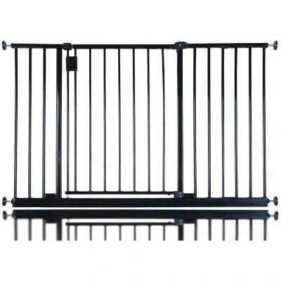 ManoManoGeneral description The Safetots Extra Wide Hallway Gate is designed for wider hallways and stairway spaces, providing a secure barrier to keep toddlers safe in designated areas of your home. It can be installed in minutes without drilling, making it ideal for rental properties. Technical specifications Width: 116cm - 121cm (standard width: 97cm - 103cm) Maximum width with extensions: 152.6cm Height: 73cm Other information Available colors: black, grey, and white Features a double locking mechanism for added security Single-handed operation for ease of use Pressure fitted installation, no permanent damage to walls or door frames Passed the EN1930:2011 Safety Standard