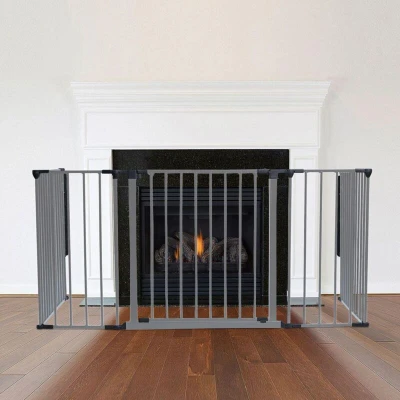 Safetots Multi Panel Fire Surround, 77cm Deep x 138cm Wide, Grey, 70cm Tall, Child and Pet Safety, Baby Toddler Guard, Safety Barrier for Fireplaces, Easy Installation
