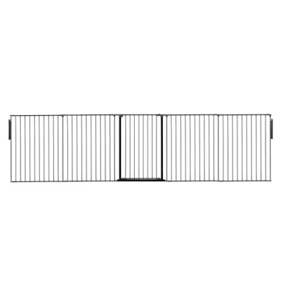 Safetots Premium Extra Tall Room Divider, up to 370cm Wide, Black, 105cm Tall, Multi Panel Flexible Barrier, Divider with Door for Baby and Toddler, Easy Installation