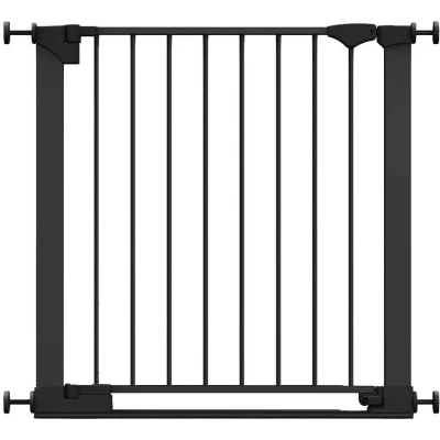 OVER 20 YEARS OF TRUST – Safetots, a family-owned business, has been dedicated to creating safe and secure spaces for children and pets for over two decades. Our commitment to safety and quality ensures that our products are rigorously tested to meet the highest current standards. With a legacy of trust and reliability, Safetots is a name you can depend on for your family's safety needs. RELIABLE SAFETY - Crafted from durable materials, our products ensure long-lasting protection. Smooth, rounded edges prevent injuries, while finishes are lick-safe and bite-proof for ultimate safety. Our sturdy baby gates feature robust, toddler-climb-proof, and finger-safe construction with a double-lock childproof opening system. Designed to exceed industry safety testing, all our baby gates pass the stringent Safety Barrier Standards EN1930:2011, providing unparalleled security. Safetots SafeStep Gate, 75cm - 82cm COLOUR - BLACK - Features a high-quality paint finish that is rigorously tested and certified to be free from harmful chemicals. This ensures a child-safe coating, providing peace of mind while maintaining a durable and attractive appearance. HEIGHT OF GATE - When installed - 73cm PRESSURE FIT TECHNOLOGY - Securely mounts the safety gate without the need for drilling, using a pressure-fit system that creates a strong and stable barrier by applying tension between the gate and the walls or door frames. Ideal for easy installation and removal. ALL OPTIONS GATE STOPPER - Customize your gate to open in one direction or both, providing safety and flexibility to suit your specific needs. OPEN GATE WARNING INDICATOR - Our visual indicator reassures you that the gate is correctly closed and secure, offering you peace of mind. SAFESTEP - Extra low bar to help prevent tripping when walking through. EASY CLOSE - Assisted closing system draws the gate back towards the locking cradle. WIDE WALK-THROUGH - The spacious opening allows for easy passage, making it convenient for adults and older children. OUT OF THE BOX SOLUTION - No additional extensions required to reach your desired width with our out of the box wider gate solution. ERGONOMIC HANDLE - Designed for comfortable and easy use, the handle ensures easy one-hand opening and closing. EASE OF INSTALLATION & STYLISH DESIGN - Our gates offer quick, simple installation with detailed instructions for a secure fit. The intuitive one-hand opening mechanism for adults and easy-to-close, secure locking system enhance user-friendliness. Stylish and high-quality designs complement your home interior, making our products highly rated for reliability and ease of use. A comprehensive warranty is included, reflecting our commitment to customer satisfaction and product excellence.
