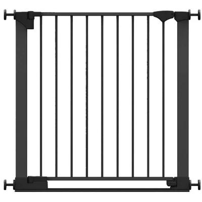 OVER 20 YEARS OF TRUST – Safetots, a family-owned business, has been dedicated to creating safe and secure spaces for children and pets for over two decades. Our commitment to safety and quality ensures that our products are rigorously tested to meet the highest current standards. With a legacy of trust and reliability, Safetots is a name you can depend on for your family's safety needs. RELIABLE SAFETY - Crafted from durable materials, our products ensure long-lasting protection. Smooth, rounded edges prevent injuries, while finishes are lick-safe and bite-proof for ultimate safety. Our sturdy baby gates feature robust, toddler-climb-proof, and finger-safe construction with a double-lock childproof opening system. Designed to exceed industry safety testing, all our baby gates pass the stringent Safety Barrier Standards EN1930:2011, providing unparalleled security. Safetots SafeStep Gate, 82cm - 89cm COLOUR - BLACK - Features a high-quality paint finish that is rigorously tested and certified to be free from harmful chemicals. This ensures a child-safe coating, providing peace of mind while maintaining a durable and attractive appearance. HEIGHT OF GATE - When installed - 73cm PRESSURE FIT TECHNOLOGY - Securely mounts the safety gate without the need for drilling, using a pressure-fit system that creates a strong and stable barrier by applying tension between the gate and the walls or door frames. Ideal for easy installation and removal. ALL OPTIONS GATE STOPPER - Customize your gate to open in one direction or both, providing safety and flexibility to suit your specific needs. OPEN GATE WARNING INDICATOR - Our visual indicator reassures you that the gate is correctly closed and secure, offering you peace of mind. SAFESTEP - Extra low bar to help prevent tripping when walking through. EASY CLOSE - Assisted closing system draws the gate back towards the locking cradle. EXTRA WIDE WALK-THROUGH - Slim frame and maximum door size for easy passage. OUT OF THE BOX SOLUTION - No additional extensions required to reach your desired width with our out of the box wider gate solution. ERGONOMIC HANDLE - Designed for comfortable and easy use, the handle ensures easy one-hand opening and closing. EASE OF INSTALLATION & STYLISH DESIGN - Our gates offer quick, simple installation with detailed instructions for a secure fit. The intuitive one-hand opening mechanism for adults and easy-to-close, secure locking system enhance user-friendliness. Stylish and high-quality designs complement your home interior, making our products highly rated for reliability and ease of use. A comprehensive warranty is included, reflecting our commitment to customer satisfaction and product excellence.