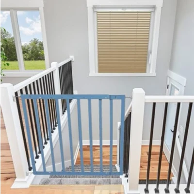 OVER 20 YEARS OF TRUST – Safetots, a family-owned business, has been dedicated to creating safe and secure spaces for children and pets for over two decades. Our commitment to safety and quality ensures that our products are rigorously tested to meet the highest current standards. With a legacy of trust and reliability, Safetots is a name you can depend on for your family's safety needs. RELIABLE SAFETY - Crafted from durable materials, our products ensure long-lasting protection. Smooth, rounded edges prevent injuries, while finishes are lick-safe and bite-proof for ultimate safety. Our sturdy baby gates feature robust, toddler-climb-proof, and finger-safe construction with a double-lock childproof opening system. Designed to exceed industry safety testing, all our baby gates pass the stringent Safety Barrier Standards EN1930:2011, providing unparalleled security. Safetots Top of The Stairs Screw Fitted Stair Gate, 63.5 cm - 105.5 cm COLOUR - Blue Wood - Features a high-quality paint finish that is rigorously tested and certified to be free from harmful chemicals. This ensures a child-safe coating, providing peace of mind while maintaining a durable and attractive appearance. HEIGHT OF GATE - When installed - 75.5cm SCREW FIT (HARDWARE MOUNTED) - Provides a highly secure mounting solution for the safety gate. No trip hazard and wide walkthrough doorway make this gate especially suitable for use at the top of the stairs and ideal for any space for longer-term use and high-traffic areas. Ensures maximum stability and durability. ONE WAY GATE STOPPER - Gate opens only in your desired direction, a safety feature essential for the stairs and useful around the home. NO TRIP GATE - No bottom bar, ensuring no tripping hazards as you walk through the gate. SIMPLE CLOSE - Manual closing system for quick and easy locking. NO FRAME DESIGN - All door and no frame design ensures maximum passage and walkthrough space. OUT OF THE BOX SOLUTION - No additional extensions required to reach your desired width with our out of the box wider gate solution. STAY OPEN ABILITY - The safety gate remains open until you decide to close it. NO HANDLE DESIGN - Seamless latch operation for opening and closing. EASE OF INSTALLATION & STYLISH DESIGN - Our gates offer quick, simple installation with detailed instructions for a secure fit. The intuitive one-hand opening mechanism for adults and easy-to-close, secure locking system enhance user-friendliness. Stylish and high-quality designs complement your home interior, making our products highly rated for reliability and ease of use. A comprehensive warranty is included, reflecting our commitment to customer satisfaction and product excellence.