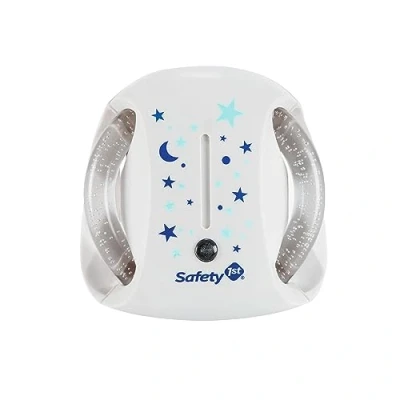 This night light from Safety 1st automatically turns on as soon as it gets dark and turns off automatically at the first daylight Contemporary design with confetti glitter and blue stars The automatic light has a very low energy consumption of only 0.4 W Thanks to the economical consumption, it lights up for up to 50,000 hours The night lcith does not heat up