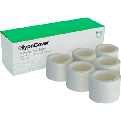 This white, non-woven porous surgical tape can be used to secure dressings, bandages and gauze Easy to tear by hand and allows skin to breathe Pack of 6, hypoallergenic and latex-free rolls, 2.5cm x 5m Strong adhesive holds dressings firmly in place while remaining easy to remove Also suitable for use in school and sports environments to safely cover up earrings, protect joints and provide light support The paper material is easy to write on, making it perfect to use in labelling at home, work or medical offices Microporous Tape is also suitable for make-up lovers looking for a tape that is gentle on skin. The lightweight tape can be used to line eyebrows in preparation for applying brow products, or around the eye for use with eyeliner and eye shadow.