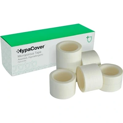 This white, non-woven porous surgical tape can be used to secure dressings, bandages and gauze Easy to tear by hand and allows skin to breathe Pack of 6, hypoallergenic and latex-free rolls, assorted Strong adhesive holds dressings firmly in place while remaining easy to remove Also suitable for use in school and sports environments to safely cover up earrings, protect joints and provide light support The paper material is easy to write on, making it perfect to use in labelling at home, work or medical offices Microporous Tape is also suitable for make-up lovers looking for a tape that is gentle on skin. The lightweight tape can be used to line eyebrows in preparation for applying brow products, or around the eye for use with eyeliner and eye shadow.