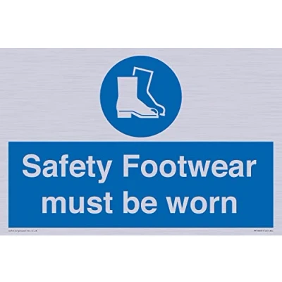 M008 : Wear safety footwear This sign is made from vinyl silver sticker A4 landscape Sign Text: Safety Footwear must be worn