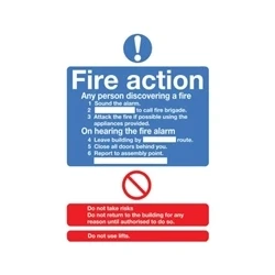 Safety Sign Fire Action Standard A5 Self Adhesive