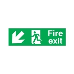 Safety Sign Fire Exit Running Man Arrow Down/Left 150x450mm PVC