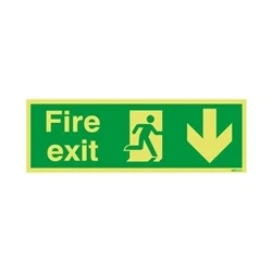 Safety Sign Niteglo Fire Exit Running Man Arrow Down 150x450mm PVC