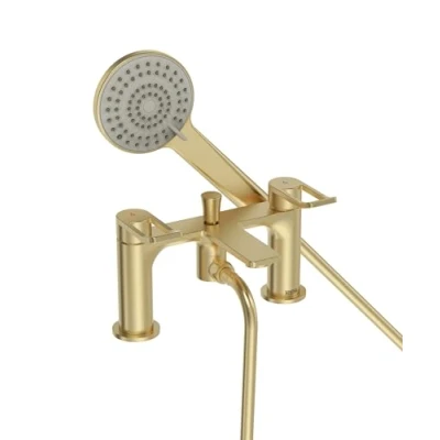 Saffron Bath Shower Mixer Tap Pillar Mounted Brushed Brass Bristan