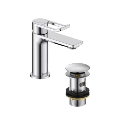 Saffron Eco Start Small Basin Mixer Tap with Clicker Waste Chrome Bristan