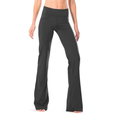 UNIQUE DIY PANTS: The women yoga pants have a total length of 86 cm but can easily be shortened to 71 cm, 76 cm, or 81 cm. All you need is a simple cut—customize the pants to suit your needs. (More details in the product photo) TRULY OPAQUE: The dense and elastic material ensures that nothing shows through. This makes the bootcut pants sutiable for both work and as sports pants for women 4 POCKETS: The women’s yoga pants feature two front pockets (15 cm wide, 15.5 cm deep) for wallets and phones, as well as two back pockets (12 cm wide, 12 cm deep) for additional storage LOOSE AND COMFORTABLE BOOTLEG: The bootleg design of the women’s flared pants allows for unrestricted movement and maximum comfort Tailoring Tips: These yoga pants are unhemmed. Please try them on before cutting to find a more suitable inseam length