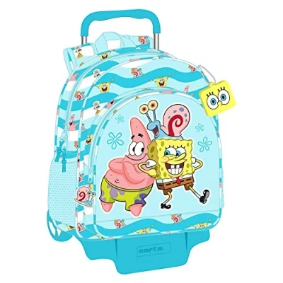 SAFTA 612291313 Backpack with Trolley Spongebob Stay Positive 33X42X14Cm, Multicoloured