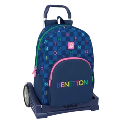 Safta BENETTON DAMERO School Backpack, with Evolution Trolley Included, Ideal for Children of Different Ages, Comfortable and Versatile, Quality Resistance, navy, M, Casual