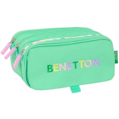 Safta BENETTON Mint Triple Big Pencil Case, Children's Child, Ideal for School Age Children, Comfortable and Versatile, Quality Resistance, 21.5 x 8 10 cm, Pastel Green, M,