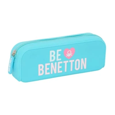 Safta BENETTON Unique Square Silicone Pencil Case, Children's Ideal for School Age Children, Comfortable and Versatile, Quality Resistance, 18.5 x 5.5 7.5 cm, Turquoise Blue/Light