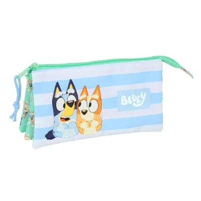 WARRANTY AND QUALITY: BLUEY SISTERS Official school pencil case with triple zip and 2 years warranty UNIQUE DESIGN: Made of a very durable polyester material and smooth zippers. Ultra-light case. Easy to wash SPACIOUS AND LIGHTWEIGHT: With 3 separate zippered compartments. Inside central zip pocket. Handles on the sliders for easy opening. Double pull on main zipper ALL AUDIENCES: Ideal for school use for both children and teenagers RESISTANCE AND DURABILITY: This product is specially designed with durability in mind, made with high strength materials to ensure that it can be used in all kinds of activities, ensuring its functionality
