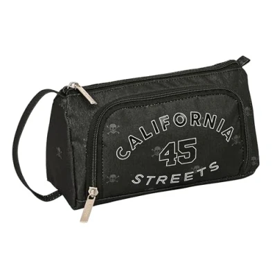Safta California Pencil Case with Folding Pocket Full, Children's Case, Child, Ideal for School Aged Children, Comfortable and Versatile, Quality Resistance, 20 x 8.5 11 cm, Black,