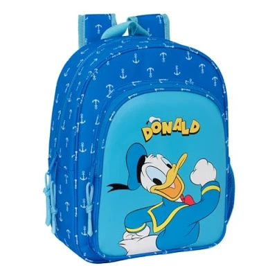 Guarantee and quality: Donald children's backpack, official, adaptable to safta trolley UNIQUE DESIGN Made from a very durable polyester material. Easy to clean Spacious and lightweight: large front pocket. Side pocket for water bottles Ergonomic and comfortable: ergonomic padded shoulder pads Sturdy and durable: this product is specially designed for its durability and is made of high strength materials to ensure that it can be used in all types of activities to ensure its functionality