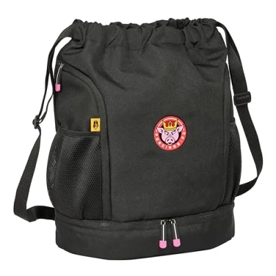 GUARANTEE AND QUALITY: KINGS LEAGUE PORCINOS Official backpack sack for multiple uses. 2 years warranty UNIQUE DESIGN: Made of a very durable polyester material and smooth zippers. Easy to wash SPACIOUS & LIGHTWEIGHT: Interior zipper pocket. Side mesh bottle pockets. Bottom compartment with 2-way opening zipper for easy access. Side zip pockets ERGONOMICS AND COMFORT: Lace up handles RESISTANCE AND DURABILITY: This product is specially designed with durability in mind, made with high strength materials to ensure that it can be used in all kinds of activities, ensuring its functionality