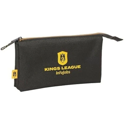 Safta Kings League Triple Pencil Case, Children's Ideal for School Children, Comfortable and Versatile, Quality Resistance, 22 x 3 12 cm, Black, Black/White, Estándar, Casual