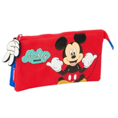 WARRANTY AND QUALITY: MICKEY MOUSE GOOD DAY Official school pencil case with triple zip and 2 years warranty UNIQUE DESIGN: Made of a very durable polyester material and smooth zippers. Ultra-light case. Easy to wash SPACIOUS AND LIGHTWEIGHT: With 3 separate zippered compartments. Inside central zip pocket. Handles on the sliders for easy opening. Double pull on main zipper ALL AUDIENCES: Ideal for school use for both children and teenagers RESISTANCE AND DURABILITY: This product is specially designed with durability in mind, made with high strength materials to ensure that it can be used in all kinds of activities, ensuring its functionality